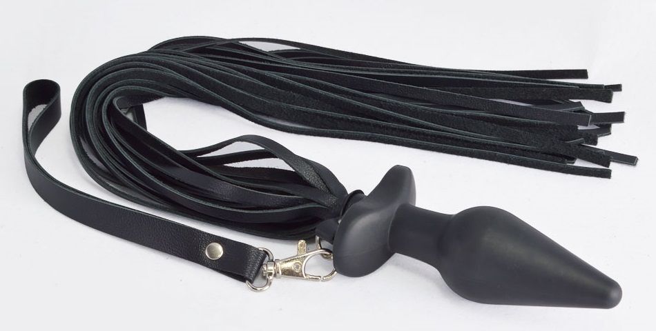 Анальная пробка с плетью - это универсальный девайс для игр БДСМ. Плеть изготовлена из высококачественной натуральной кожи, состоит из 20 плоских лент. Длина лент - 40 см. Рабочая длина пробки - 7,1 см., диаметр - 3,6 см.
