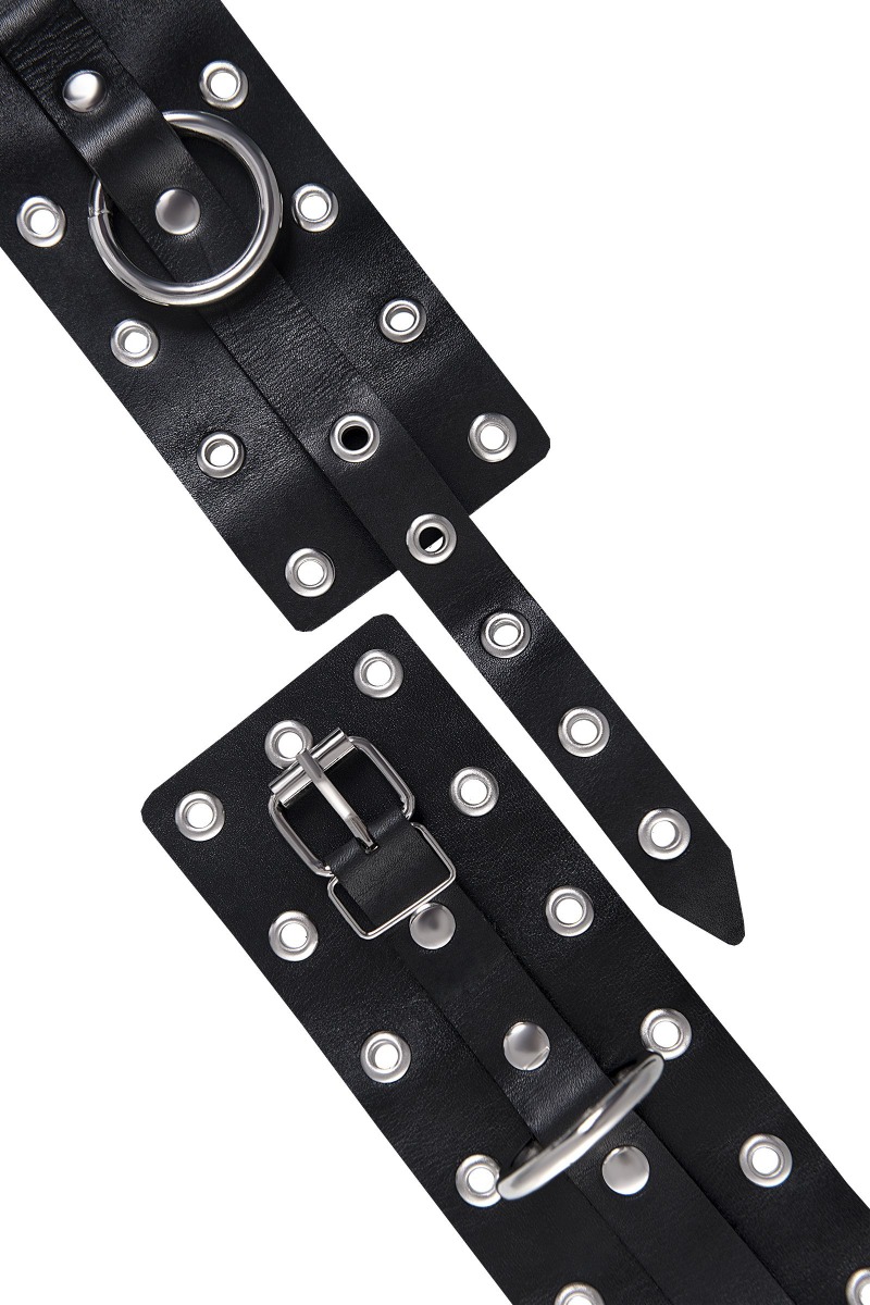 Эти однослойные кожаные наручники с люверсами могут стать стильным аксессуаром, а могут послужить вашим целям по своему прямому назначению. Частичное обездвиживание и невозможность двигать руками дают вам полную власть над партнером – взрослые игры для взрослых. Наличие двух колец и карабинов, соединенных между собой металлической цепочкой, позволяет использовать изделие как раздельно – аксессуар-манжеты, так и как наручники для фиксации. К широким металлическим кольцам также можно присоединить и другие аксессуары при помощи карабинов. Благодаря универсальному размеру наручники могут использоваться и мужчинами, и женщинами. Размер легко регулируется с помощью металлических пряжек, органично вписывающихся в общий стиль. Длина манжет - 20 см, ширина - 6,5 см. Длина сцепки - 13 см.