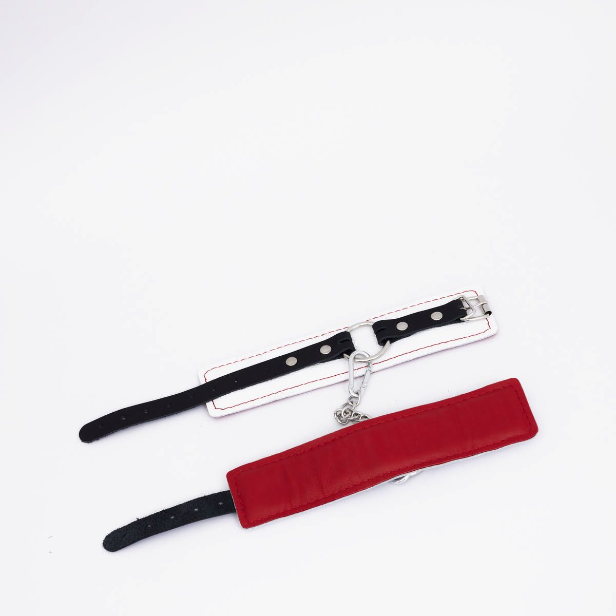 Представляем вам оковы с контрастным дизайном , которые станут вашим идеальным выбором для создания особой атмосферы. Эти оковы — это гармоничное сочетание комфорта, безопасности и стиля, созданное для тех, кто ценит детали и безупречное качество. Изделие состоит из двух слоев натуральной кожи : основной слой белого цвета – лицевая часть, и подкладка красного цвета с мягким наполнителем , которая обеспечивает комфортное и безопасное использование, не натирая кожу. Декоративная красная строчка добавляет изделию стильный акцент, подчеркивая его элегантность и игривость. В комплект входит прочный соединительный элемент в виде цепочки с двумя надежными карабинами , которые обеспечивают стабильность и контроль. Общая длина изделия составляет 33 см , а каждая манжета имеет размеры 25,5 х 7 см , что делает их универсальными и подходящими для любого типа использования (от 23 до 32 см). Упаковка? Она тоже произведение искусства! Оковы доставляются в фирменной упаковке с брендированной деревянной подложкой, которая не только защищает изделие, но и делает его идеальным подарком для особого человека… или для себя любимого(-ой). Длина манжеты - 25,5 см, ширина - 7 см.