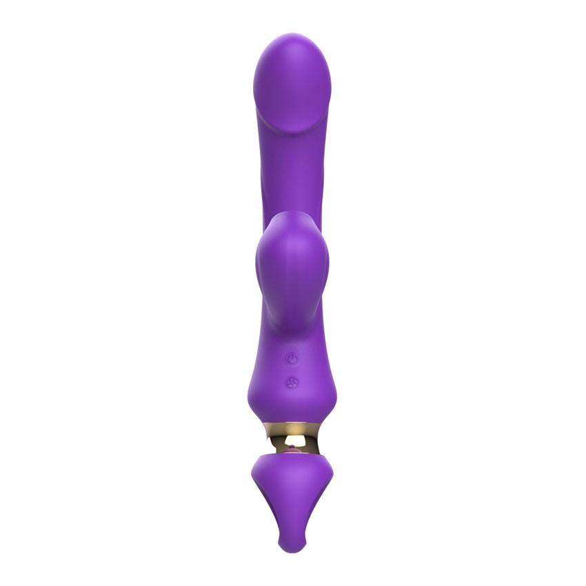 Фиолетовый вибратор-кролик с вакуумной стимуляцией клитора. 10 режимов вибрации, 10 режимов вакуума. Рабочая длина - 11,8 см.