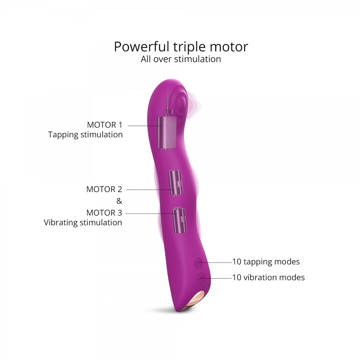 Вибратор Swap - это 3 мотора для еще более увлекательных игр, неутомимый Swap впечатляет визуально своими изгибами и анатомическим дизайном. Вибратор Swap предлагает две различные стимуляции: постукивание и вибрацию. Можно брать с собой в душ, он водонепроницаемый! 10 режимов постукивания, 10 режимов вибрации. Рабочая длина - 15 см.