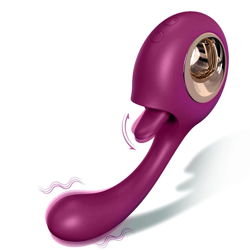 Оригинальная секс-игрушка для чувственного наслаждения. Изогнутый ствол вибромассажёра предназначен для стимуляции влагалища и точки G. Нежный язычок стимулирует клитор. Разнообразные режимы вибрации усиливают удовольствие. Движущийся в разные стороны язычок имитирует страстные оральные ласки и дарит непередаваемые эротические ощущения. Рабочая длина - 10 см.