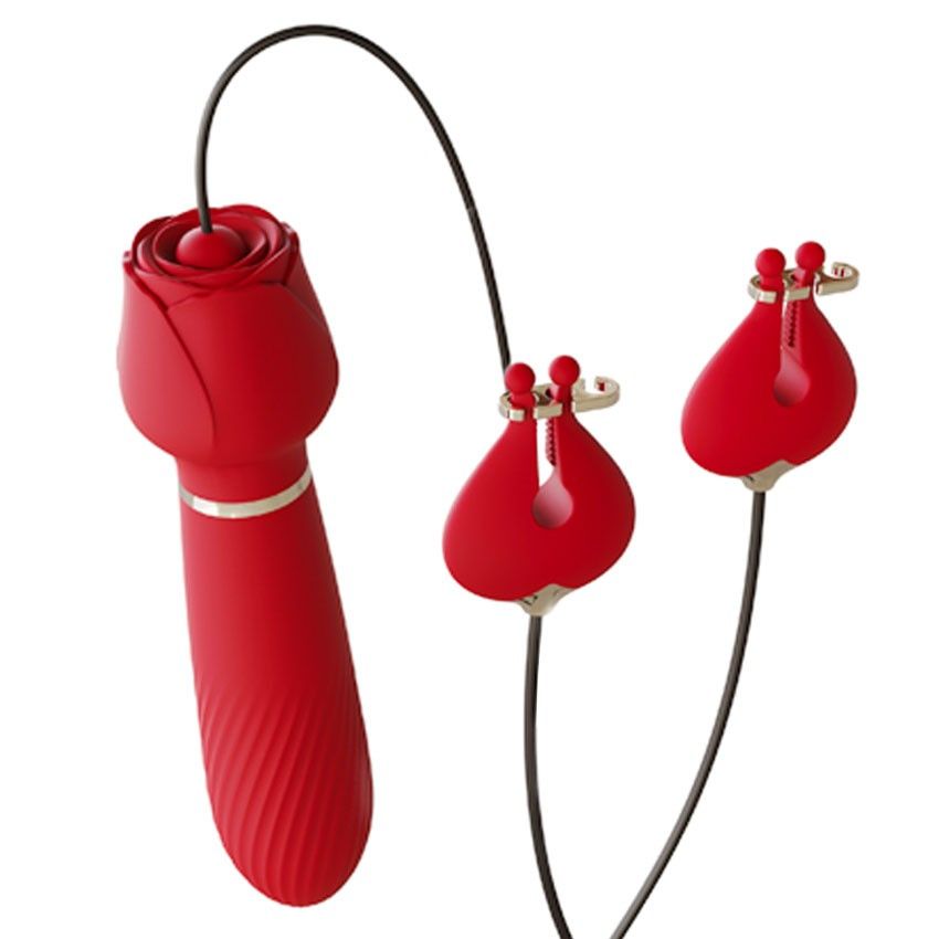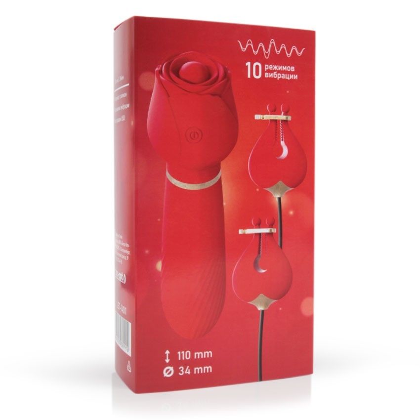 Роскошный интимный аксессуар для самых искушённых любителей секс-игрушек. В комплект входят вибромассажёр в виде прекрасной розы и два нежных бутона – зажима для сосков, которые соединены между собой проводом. 10 режимов вибрации. Включение/выключение вибрации вибромассажёра: нажать и 3 секунды удерживать кнопку на корпусе вибромассажёра. Переключение виброрежимов: краткое нажатие той же кнопки. При включении вибромассажёра вибрация распределяется по всей поверхности ствола. Включение/выключение вибрации вибромассажёра в зажимах для сосков: соединить провод с вибромассажёром. Затем нажать и 3 секунды удерживать кнопку на корпусе вибромассажёра. Переключение виброрежимов: краткое нажатие той же кнопки. При этом вибрация будет работать одновременно в зажимах и вибромассажёре. Рабочая длина - 11 см.